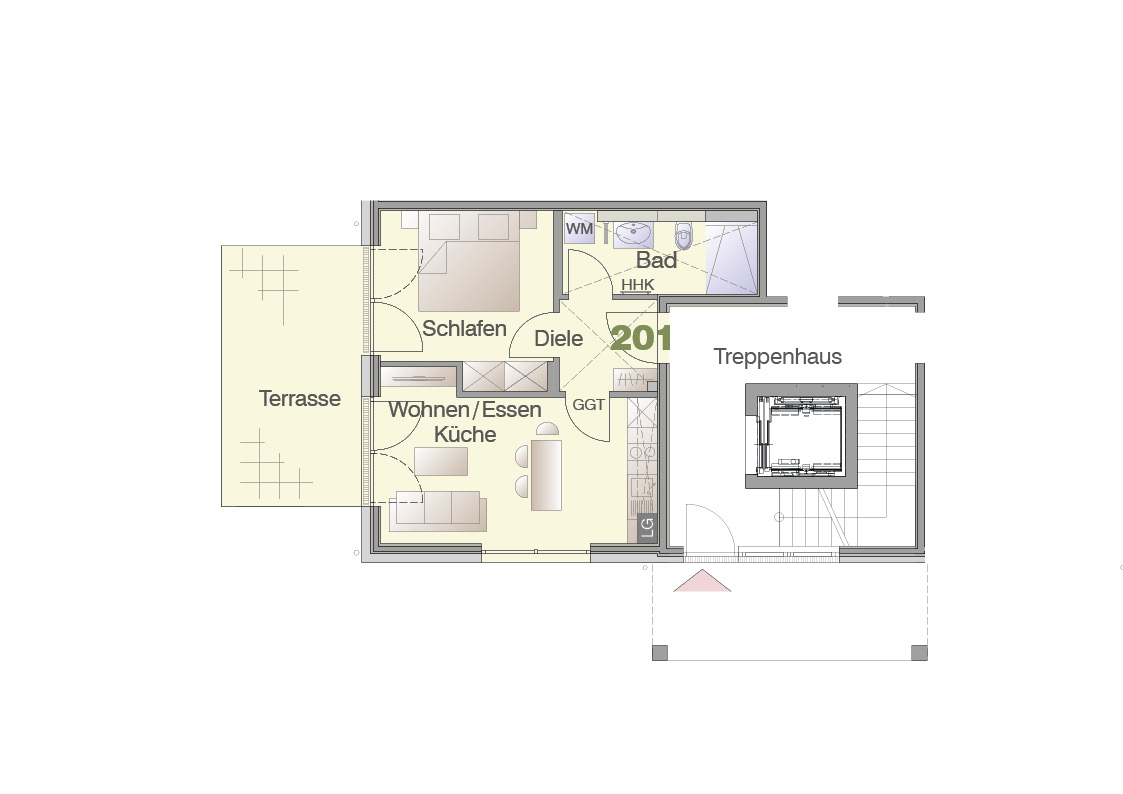201Erdgeschoss46,17 m²2- ZimmerVerkauftVerkauft