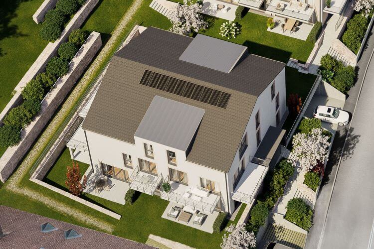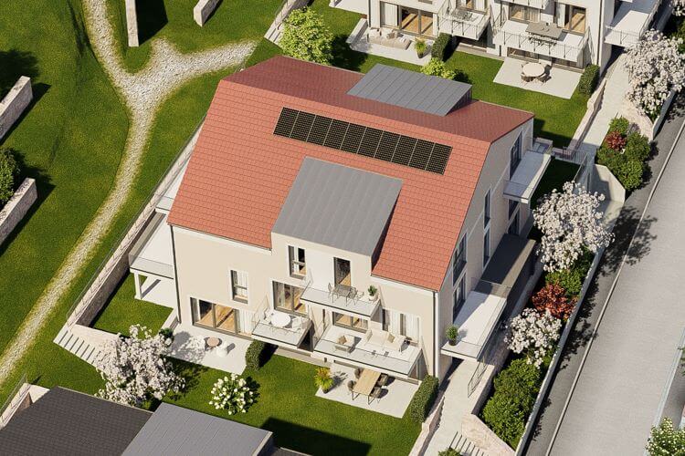 Die Gebäude erfüllen die Vorgaben des GEG 2020 (Gebäudeenergiegesetz 2020), den sogenannten KfW 55 Standard. Dies wird durch eine Pelletheizung mit Niedrigtemperaturkessel, Solarkollektoren zur Brauchwassererwärmung auf den Dächern, entsprechender Gebäudedämmung und der raumabhängig temperierbaren Fußbodenheizung erreicht.
